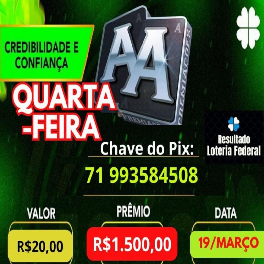 Pix de R$1.500,00 número da sorte 36Sorteio: